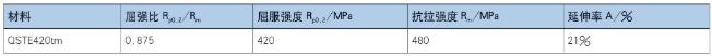 本文研究的零件是某汽车的拖曳臂,其外形如图1 所示,整体是轴线为空间曲线、截面为不规则形状且变化的管状零件。零件的技术要求是最终减薄率不超过15%,配合型面轮廓度0.5mm,非配合型面轮廓度3mm。零件壁厚4.5mm,材料是QSTE420tm,属于冷成形热轧汽车结构钢,其材料力学性能参数如表1 所示。图2 所示是零件截面周长趋势图,由图2 可以看出,除去截面不是封闭曲线的部分零件,零件截面积最小等效周长约192mm,最大等效周长约211.58mm。考虑管径公差,选取外径为φ62mm 的圆管作为成形坯料,最小变形-1.38%,最大变形8.68%。
