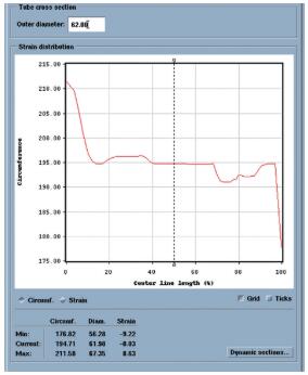 ⑶通过改善压弯模具型面,提高了零件的极限膨胀率,与传统方法相比,可以成形出大截面周长的矩形零件,使得零件的形状设计可以更加多样化;提高了零件的变形均匀性。