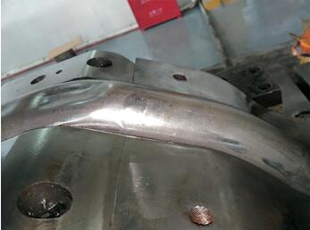 将压弯成形后的零件放入胀管模具的凹模中,凹模不动,凸模合模下压,加压1500t,保压同时向管内充入高压乳化液,乳化液加压到180MPa 后,保压3s 后卸压。成形后的零件如图16 所示,最终零件没有起皱和破裂缺陷,贴模度也满足零件的成形要求,表面质量良好。