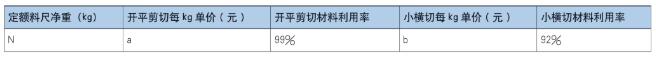 钢材加工费用=(工序1)开平剪切费用+(工序2)小横切费用=a×N/(0.99×0.92)+b×N/0.92。