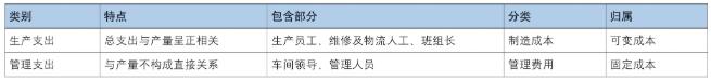 车间内部人力支出分为两个类别,如表2 所示,一个类别为生产线的人工薪酬及支出,此部分支出的特点是当产量增加时,人工薪酬需要进一步增加,因此属于可变成本。另一类别为管理支出,当产量增加时,也不会进一步增加,属于管理费用。