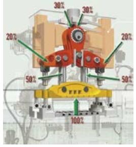 3)其他特殊材料。随着高速压力机行程次数的提高,在滑动支撑或导向部位逐渐采用特殊材料。如在滑动摩擦部位采用摩擦性能更好的巴氏合金;在球碗等承受大冲击载荷的部位采用高力黄铜或铍青铜等。