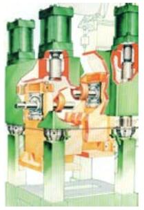日本AIDA 公司使用了复合轴承(滚动轴承+滑动轴承),在冲压时,滑动轴承起作用,刚度大;非冲压时,滚动轴承起作用,摩擦力显著降低,有利于高速运行。