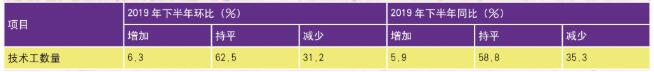 行业技术人员情况,数据普遍反映持平或减少,说明行业技术人才短缺的现象并未得到缓解。具体数据见表6。