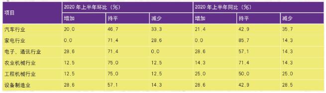 关于2020 年上半年冲压行业的市场需求情况,根据所有参加调研企业反馈,汽车行业需求预测继续减少或持平,电子、通讯行业预测需求增加,设备制造业预测有所复苏,其他行业大部分专家预测会持平。但应该说保持持平的心态最为明显,如果影响行业运行的一些因素向恶性方向转化,会导致需求减少,行业运行将十分艰难。具体数据见表10。