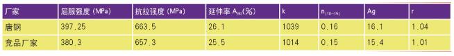 取唐钢板料与竞品料片进行基础力学性能分析,探究材料基础力学性能差异。