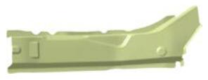 采用Handyscan 700TM 3D 激光扫描仪对左纵梁前段零件进行扫描得到其点云数据,并对点云数据进行坐标系调整、噪点删除等预处理,得到分布规则的点云数据,然后采用Catia 软件中逆向相关模块对曲线和曲面进行拟合重建等后处理,重要特征区域采用截面线拉深倒角等手段重建特征,经过曲面光顺、连续性检查等得到相对质量较高的曲面,最后运用Catia 中误差分析命令进行误差测量,保证最终得到拟合的零件数模与实际冲压零件误差控制在0.1mm以内,逆向的零件数模如图2 所示。