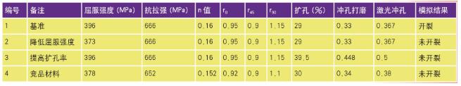 ⑷参照以往生产的材料扩孔率对试模料的扩孔率值进行优化,边裂值降低为0.808,改善效果更为明显。