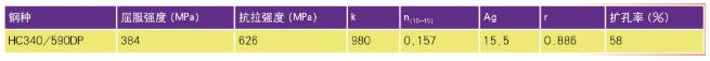 ⑴对于HC340/590DP 而言,降低材料的屈服强度,提高扩孔率可减少零件出现翻边开裂的概率,本质上是通过工艺优化,提高材料组织均匀性,达到改善翻边开裂的效果。