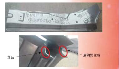 在模具状态基本一致的情况下,优化后唐钢材料冲制的零件边缘状态明显改善,未出现贯穿裂纹,优于竞品厂家材料冲制的零件边缘状态。