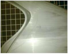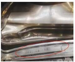 该车型侧围外板模具在前期调试时,由于C 柱腰线位置的暗坑缺陷,单件Audit 评审时扣B 类项,此问题为必须消除项,缺陷状态如图3 所示。