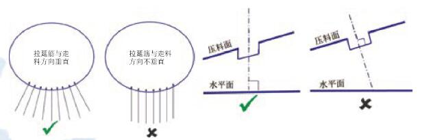 ⑻拉延筋设置时一定要保证与板料流动方向垂直,并且必须垂直于水平面,不能垂直于压料面,如图7 所示。