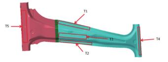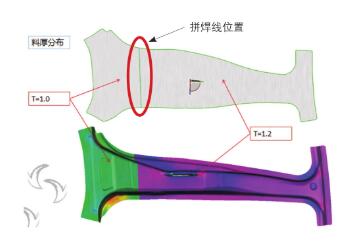 ⑷料厚分布介绍,热成形拼焊板零件拼焊方式及拼焊线位置,如图5所示。