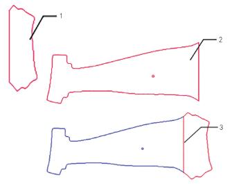 为了更好理解工艺过程,简要说明热冲压模具结构的具体工作过程和原理,热成形模具激光拼焊板冲压过程中,首先上模压料芯5压住整个板料(区域1、2和3),如图6所示。之后,上模镶块4、6下压板料与下模压料芯8、9接触,上模镶块4、6与下模压料芯8、9一起下压板料,完成成形过程,如图7所示。