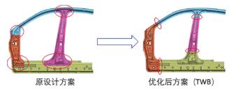 ⑴原方案:4个零件是单独成形,后续通过点焊装配;优化方案:采用激光拼焊整体成形。