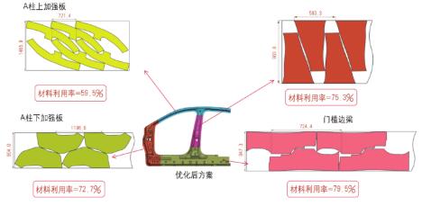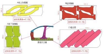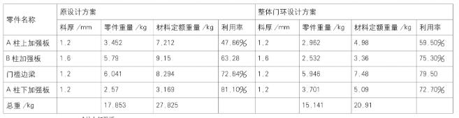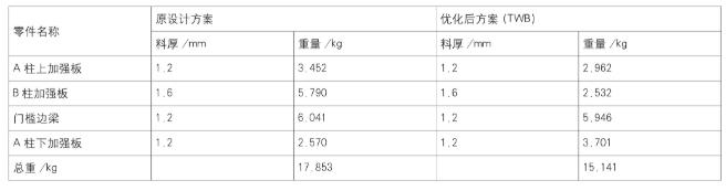 以传统设计的A柱、B柱、门槛梁和车顶边梁点焊接门环方案与激光拼焊的无涂层板的方案进行对比分析。