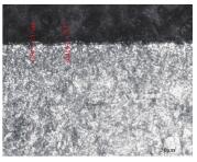 对真空加热的门环以及气氛炉加热的门环用金相法进行氧化皮厚度测试,普通炉如不通入氮气进行气氛保护,氧化皮厚度一般在10μm以上,而通入氮