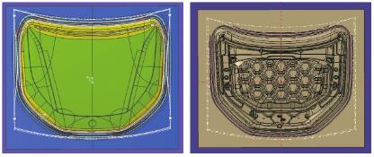 根据前罩外板产品的形状和材料的特点进行拉延面设计,用CATIA设计如图2所示。