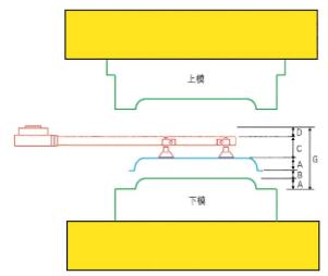 A-零件深度 B-下模安全距离 C-端拾器高度 D-上模安全距离G-取件所需的空间