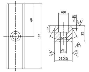 也可采取在模具上下平面增加垫板的方式,在垫板上加工对中槽来解决。如果改造模具为双动拉延模,还应考虑上模以及压边圈的对中槽改造加工,以匹配双动机床内外滑块垫板安装快速对中的需求。对中键加工尺寸,长120mm,淬火硬度38~42HRC,用沉头螺栓进行锁紧。具体要求如图2所示。