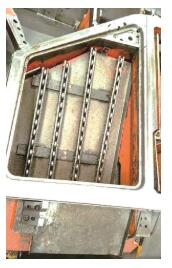 ⑹采用振动方式辅助排出,在废料滑板下加装振动装置,通过振动减小摩擦,加速废料下滑排出。