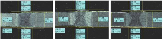 ⑵热冲压前激光拼焊板焊缝位置剖面金相未发现焊接缺陷,焊缝凸起未超出0.21mm,判定合格。金相图片及测试结果如图5所示。