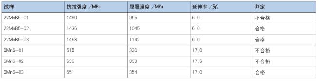 ⑶热冲压后硬区基板拉伸试样1件屈服不合格,软区基板拉伸试样2件屈服不合格。具体测试结果如表2所示。