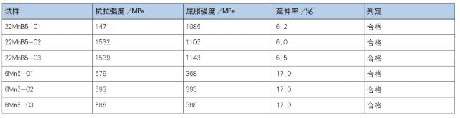 本次案例硬区基板采用1.50mm×180mm×360mm的22MnB5 AS150,软区基板采用1.40mm×180mm×360mm的6Mn6 AS150,采用本司的填丝激光拼焊工艺。激光拼焊板在热冲压前须检测确保试板合格,热冲压后试板测试须到以下设定检测标准。