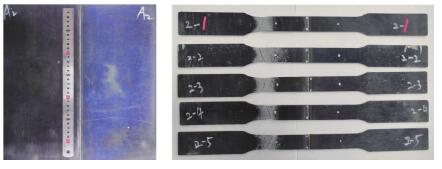 热冲压前激光拼焊板检测符合试生产要求,按照以上热冲压生产工艺在平板模进行试生产。测试结果及数据如下。