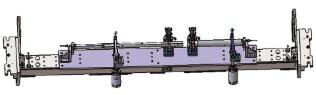 该零件的激光切割夹具如图5所示,该夹具的结构同管材的夹具相似,也分为三个部分:⑴固定板,同管材的固定板固定方式一样。⑵零件定位装置,该零件上有两个很重要的安装孔,因此采用孔定位的方式使零件位置准确,定位结构采用气缸带动定位销,可以前后移动,方便工件的取放。⑶零件的夹紧装置,夹紧装置同管材件相似,只是夹紧头随零件的形状做了改变。