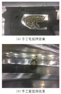 传统方法修复时往往涉及到烧焊,普通焊接温度较高,而且辐射范围大,会极大的破坏电镀层。据铁碳合金相图可知,铸铁的熔化温度至少在1148℃,远高于电镀层的损坏温度(700℃),而手工氩弧焊的电弧温度可以达到10000℃以上,手工电焊的电弧温度也在6000℃~8000℃,这样电镀层周围很大区域都会受到电弧的热影响。普通焊接的焊接层的余量不易控制,较大余量极易造成在研修过程中电镀层二次损伤(图3)。