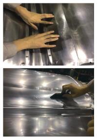 另一种方法是先脱镀再修复,修复完成后再电镀。其优点是可以彻底消除制件质量缺陷保正模具的成形的稳定性,但是脱镀后重新电镀的维修成本高。以普通车型翼子板为例,脱镀后重新电镀一次大约需要3~4万元,而且此方法的维修周期长,一个脱镀电镀加维修的周期至少需要3到5天时间,维修期间需要充分考虑模具的产量及生产周期。