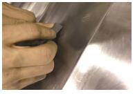 3)用大油石(颗粒密度250左右)研修光顺整个烧焊周围的型面,直至烧焊处与周围电镀层完全接上 (图10)。
