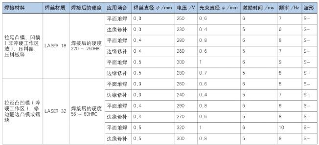 ⑵在大量的修复工作中,针对焊接不同材料,不同型面的模具,总结出了较合适的焊接参数(表1)。