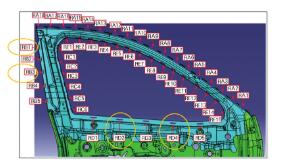 采用样片级别得出的焊接参数,在激光功率为最大功率的60%,焊接速度为60mm/s的条件下进行焊接,焊接两台车,选取4条焊缝来研究,如图8中的RB1和 RB3。