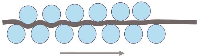 ⑴因内应力引起的翘曲,通过轧制方向的反复弯曲可以消除。在进口处的第一道矫直辊,需要对卷料产生塑性变形。
