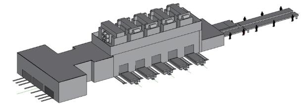图1 五序冲压线三维模型