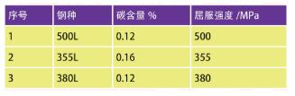 常用纵梁及加强梁钢板材质及屈服强度如表1所示。