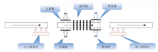⑴入口测量装置,测量钢板矫直前的侧弯数据。