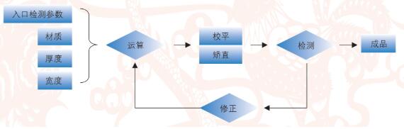 平均测量值在测量装置的电脑中形成,可以连续读出工件的平均曲度。工件末端离开第一个测量头时,测量停止,测量数据则传送给校平机。测量过程结束之后,测量装置准备进行下一个过程时,测量装置的定位电机返回到其基本位置(装置检测工件一侧的曲度,工件另一侧忽略不测,不检测工件宽度公差)。可以看出,侧弯的测量实际上并非整体的侧弯,而是连续曲率的平均值,这个值通过进一步运算,转化为下一步碾压校平的输入参数。需要说明的是,测量头为全长连续多点测量,取最后结果的平均值作为计算参数(测量最小单元为2m),此外,不能矫直带有“S”形侧弯的钢板。