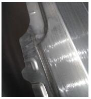 一般科学系统地解决暗坑缺陷的步骤为:⑴检查整形序凸模基准,确保无明显加工误差及研修缺陷。如果存在以上缺陷,则通过光顺或烧焊研修解决。⑵检查制件与凸模服贴性,检查手段为刷蓝色和压橡皮泥或塞尺测量相结合。要求型面与制件为无间隙服贴,若存在间隙,则通过调整拉延序,将拉延后的回弹消除或控制到最小。如果依然无法满足服贴要求,则可对整形凸模进行烧焊研修补偿,这需要很高的研修手法。⑶检查优化功能区压料板着色,确保着色均匀,无明显硬点和断点,一般着色率标准为95%以上。⑷检查优化整形凸凹模间隙,确保间隙均匀合理,采用的间隙值通常略大于料厚。