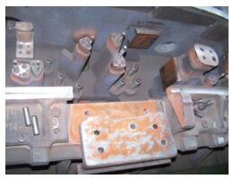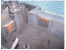 从图11与图12的比较可知,“F”字头方向不一致,模具安装要对准“F”字头,由于位置错误,凸模上的“F”字头与压边圈“F”字头方向相反,究其原因,主要是模具制造前期的泡沫模加工环节,甲、乙双方没有设置验收环节所造成的。