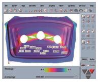 工艺凸包及内外侧拉延筋优化更改后,OP20拉延模拟料片减薄率结果,如图15所示。后盖外板上平面大部分区域的减薄率可达4%左右,工艺优化后有利于零件的拉延成形,改善零件的受力状况。