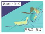 由于OP20成形工艺的改变,导致更改前后OP20成形件轮廓形状差异较大。为避免前后工序型面不匹配产生新的表面质量缺陷,需对后续工序OP30大平面侧切边模进一步优化。更改前切边轮廓较高,更改后切边轮廓较低,如图16、图17所示。根据拉延工序模芯状态,对后续工序进行随形优化。