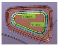 翼子板五序生产,充电口处的OP20预修边整形工序,如图14所示,保证板料先修边再成形到位,通过对预修边和整形工序进行合并,实现了翼子板的短工序生产。