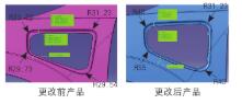 原产品充电口位置、R角及回转半径,侧立壁拔模角等尺寸皆对充电口的成形可行性、面品缺陷产生重要的影响,经过多轮的模拟分析及产品评审及产品沟通,产品得到了改善(图7)。