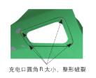 充电口模拟分析后成形破裂(图9),原R凸为1.5mm,R凹为3mm,模拟后底部四角开裂,建议R凸>3mm,R凹>8mm,对产品进行改善。
