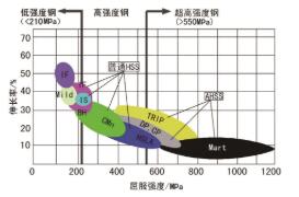 汽车钢板按强度等级可分为低强度钢、高强度钢及超高强度钢,其中屈服强度小于200MPa的材料,定义为低强度钢(以下简称“普板”)如图1所示。
