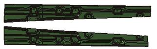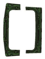通过对上述分件后的制件合并后进行分析,制件两端大小不一样,制件成形时可以采用梯形材料,具体见图9中的制件成形分析;制件梯形料排样图如10所示;天窗安装板分件左/右段实物单件如图11所示。