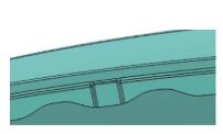 多料翻边且翻边长度过长,想控制起皱,只能采用夹料翻边工艺方案,初步尝试前序一次夹料翻边到底,后序侧整形控制回弹。从AutoForm模拟结果(图5)上来看,由于翻边有二层台阶,整体翻边镶块R角无法同时接触棱线凸模R角,产品两侧的R角受到多料挤压(图内红圈所示),造成R角变形,类似R角不顺问题在现场为常发问题,不能满足外表面冲压件的外观要求,所以此方案也不能满足要求,只能继续寻找更好的解决办法。